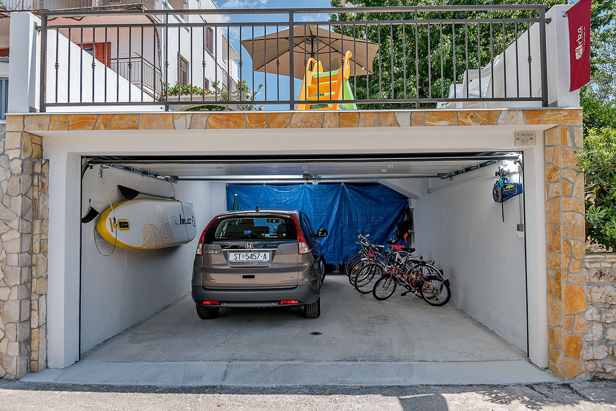 Secure parking place or closed garage, remotely operated door, for car/motorbike